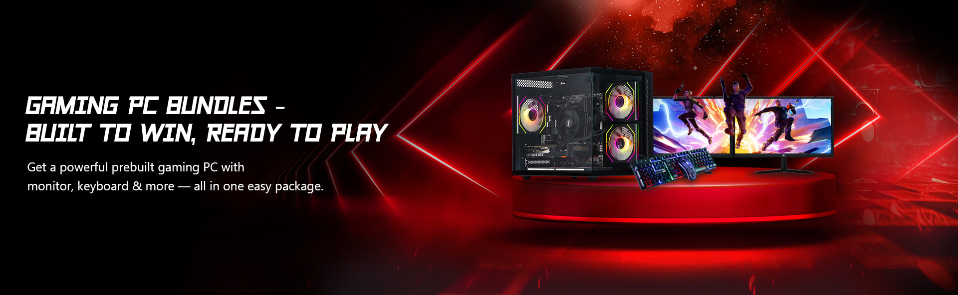 Yes! We regularly offer gaming bundle deals and seasonal promotions, making it simple to get a complete affordable gaming PC bundle at the best value. Whether you’re looking for a starter gaming PC bundle, an entry level gaming PC bundle, or a budget gaming PC, our deals help you save without compromising on performance. Each bundle can include a gaming PC monitor, keyboard, mouse bundle, giving you a full setup at a competitive price. Keep an eye on our latest offers to upgrade your system or start your first gaming PC bundle today.