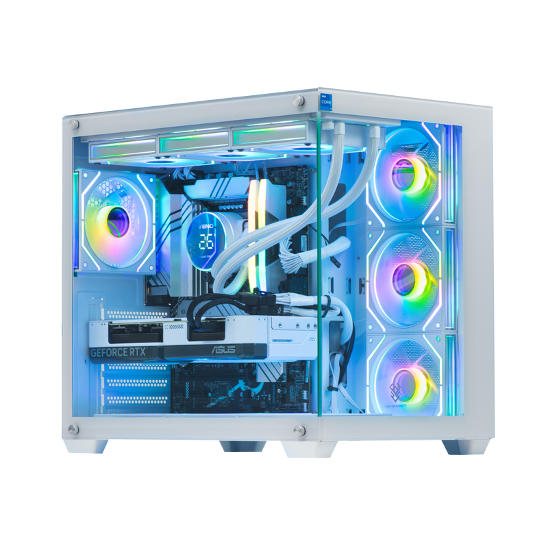 - Highlights: Liquid-cooled i9 processor, RGB flair, and stunning white finish